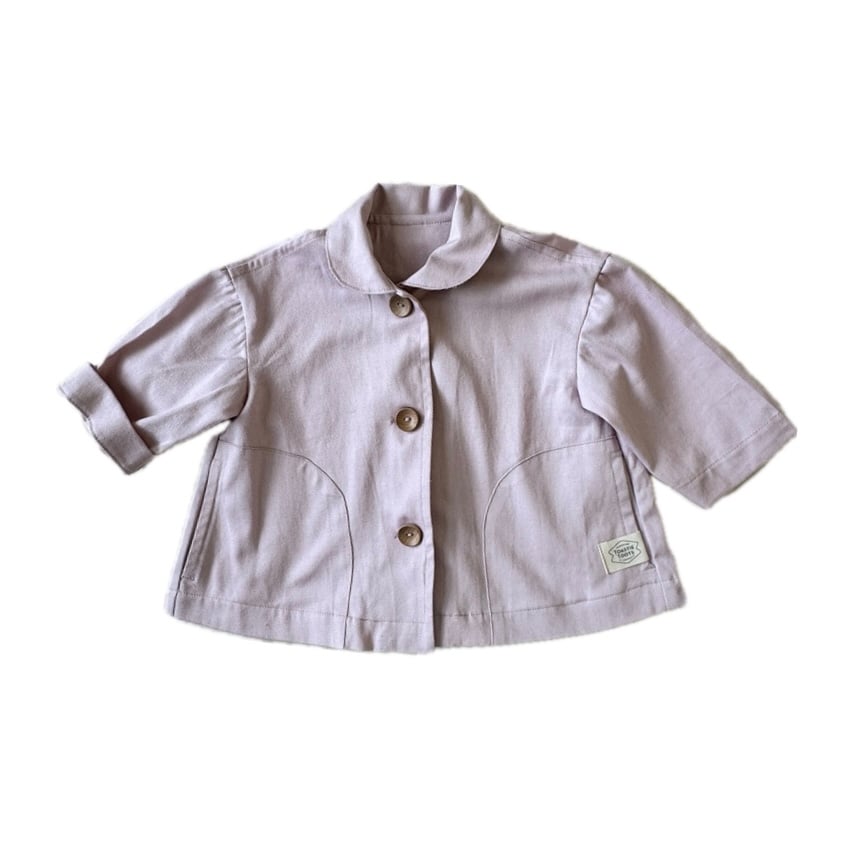 A new design for w25, this relaxed fit style jacket is handcrafted in a beautiful soft cotton drill. It features three wood buttons, two front panel pockets with contrast inner binding (mini choc gingham) and collar with contrast lining. A beautiful heirloom piece to pass on. Layer over any of our cute outfits.